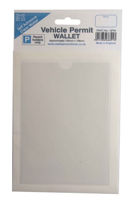 CASTLE VEHICLE PERMIT WALLET CLEAR SELF ADHESIVE